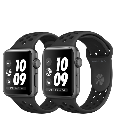 Apple Watch Nike+ series 3 38мм, корпус из алюминия цвета «серый космос», спортивный ремешок Nike цвета «антрацитовый/чёрный» (MQKY2)
