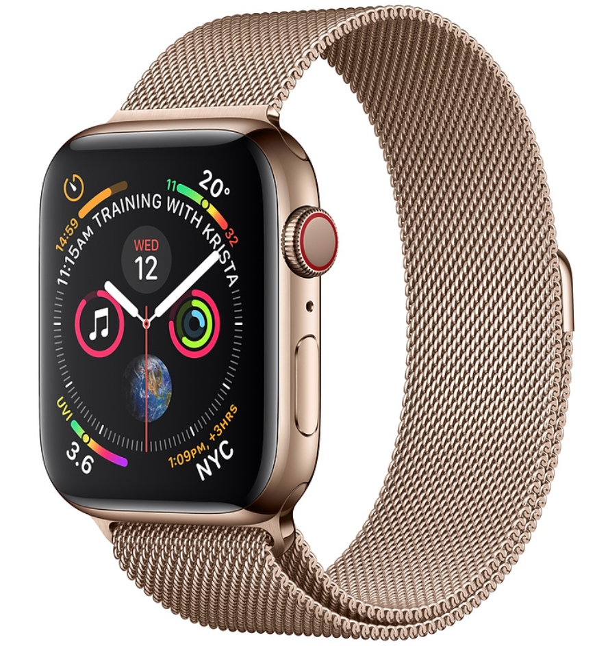 Apple Watch Series 4 Cellular, корпус 40 мм из нержавеющей стали, золотистый миланский сетчатый браслет (MTVQ2)