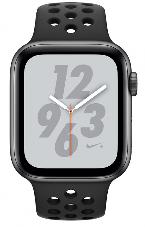 Apple Watch Nike+ Series 4, 44 мм, корпус из алюминия цвета «серый космос», спортивный ремешок Nike цвета «антрацитовый/чёрный» (MU6L2)