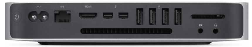 - Разъемы и порты устройств:Разъем для микрофона, Разъем для наушников 3,5 мм, Порт Gigabit Ethernet, Порт FireWire 800 (до 800 Мбит/с), Порт Thunderbolt (до 10 Гбит/с), Порт HDMI, Разъём для карт SDXC, Четыре порта Usb 3 (до 5 Гбит/с)